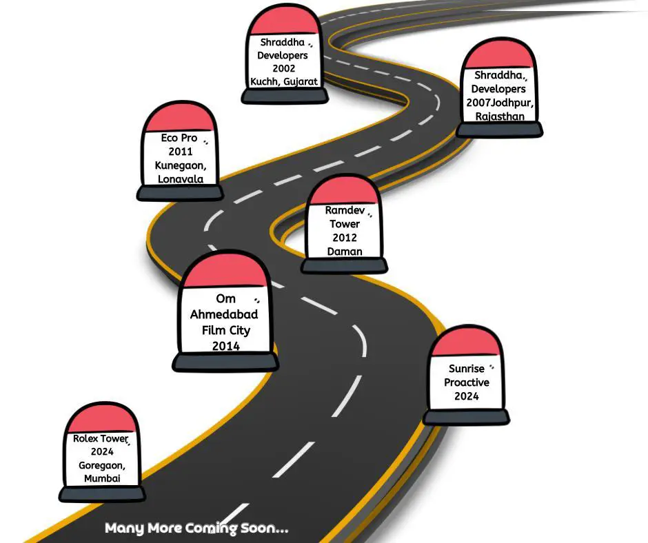 • In 2024, reconstructing Rolex Tower, a mixed high-rise project in the heart of Goregaon, Mumbai.
